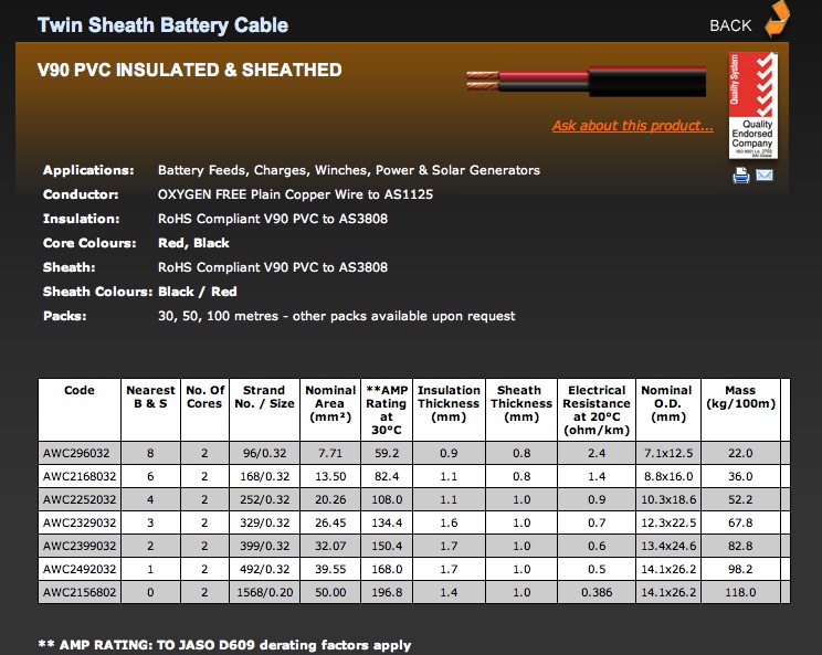 Most cables are manufactured by Tycab Cables in Dandenong, Victoria.
